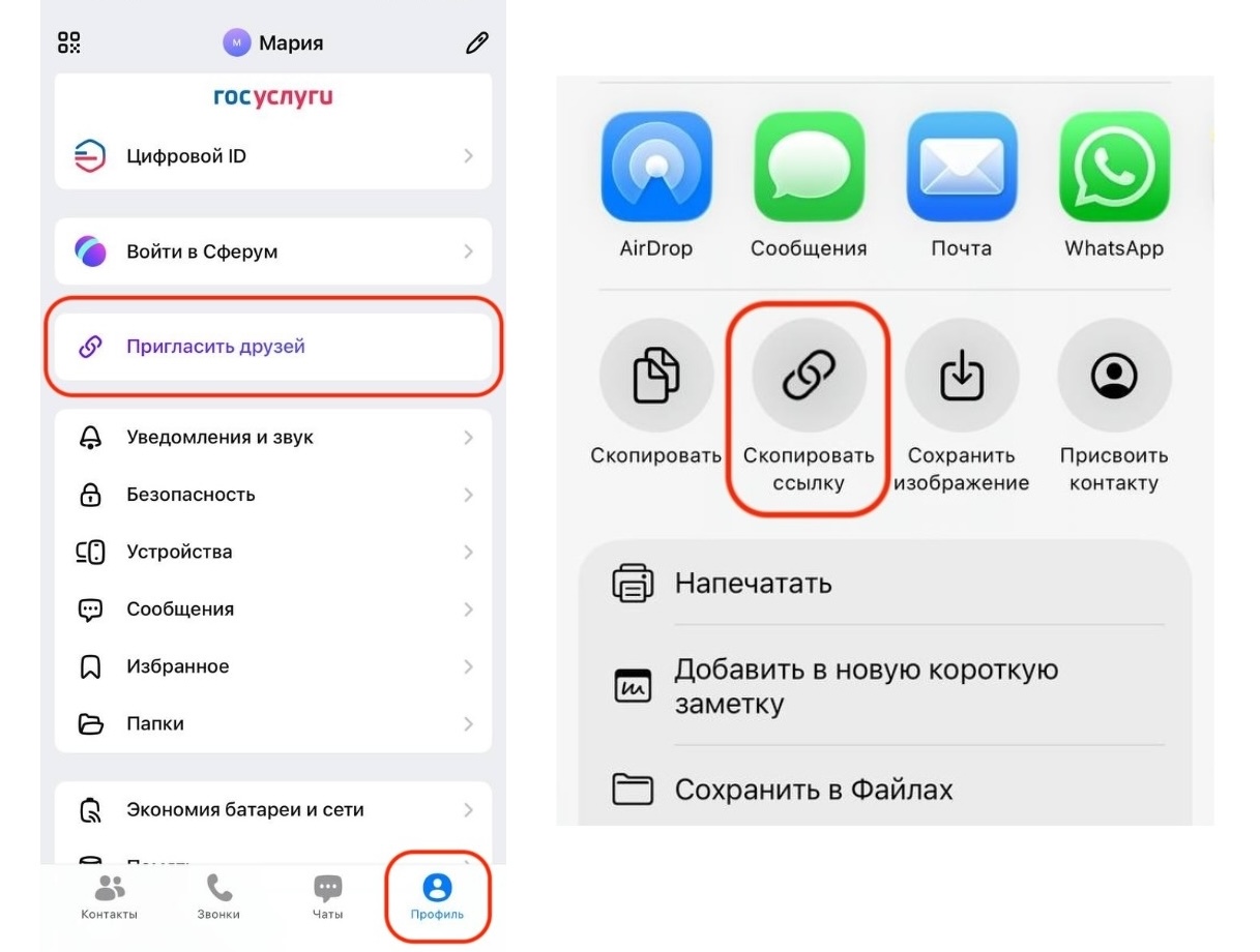 2. В открывшемся меню настроек нажать на «Пригласить друзей» → скопировать ссылку и отправить её рекрутеру