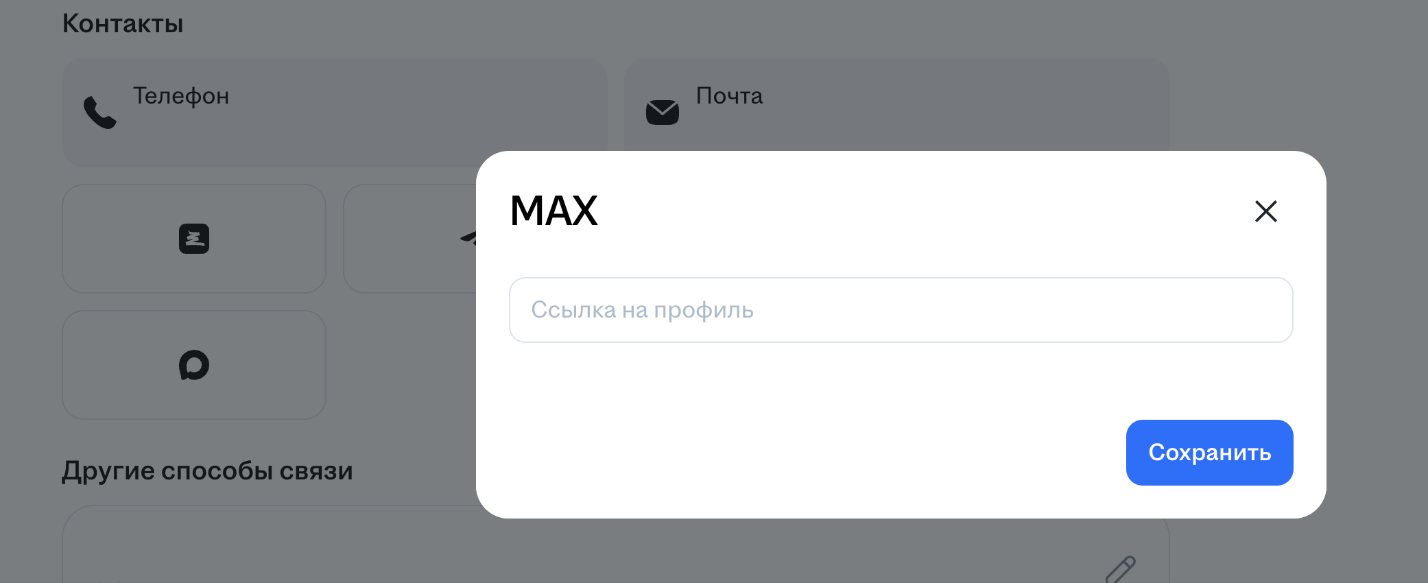 В мессенджере MAX реализованы такие правила безопасности и конфиденциальности данных пользователей, что для поиска профиля пользователя из внешних систем нужно использовать специальную пригласительную ссылку, поиск по номеру телефона при переходе в чат MAX из Хантфлоу недоступен. Чтобы общаться с кандидатами в мессенджере, нужно, чтобы в карточке кандидата была добавлена ссылка на профиль кандидата в MAX. Такая ссылка начинается с https://max.ru/u/. Кандидат также может добавить ссылку в разделе контактов своего резюме на HeadHunter, Rabota.by или Zarplata.ru.