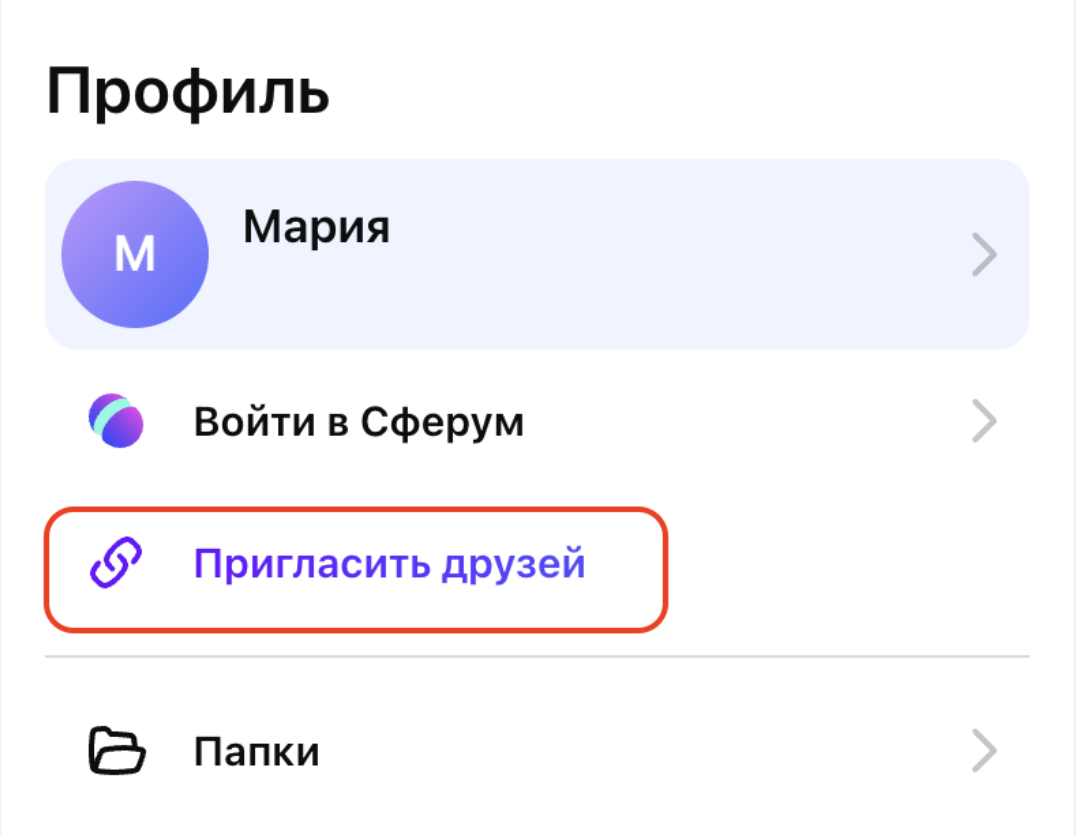 2. В открывшемся меню настроек кандидату нужно нажать на «Пригласить друзей» → скопировать ссылку и отправить её рекрутеру